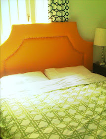After spending considerably more time than I thought and a small fortune on upholstery tacks, the project was complete and I had my very own orange monstrosity to rest my head on.