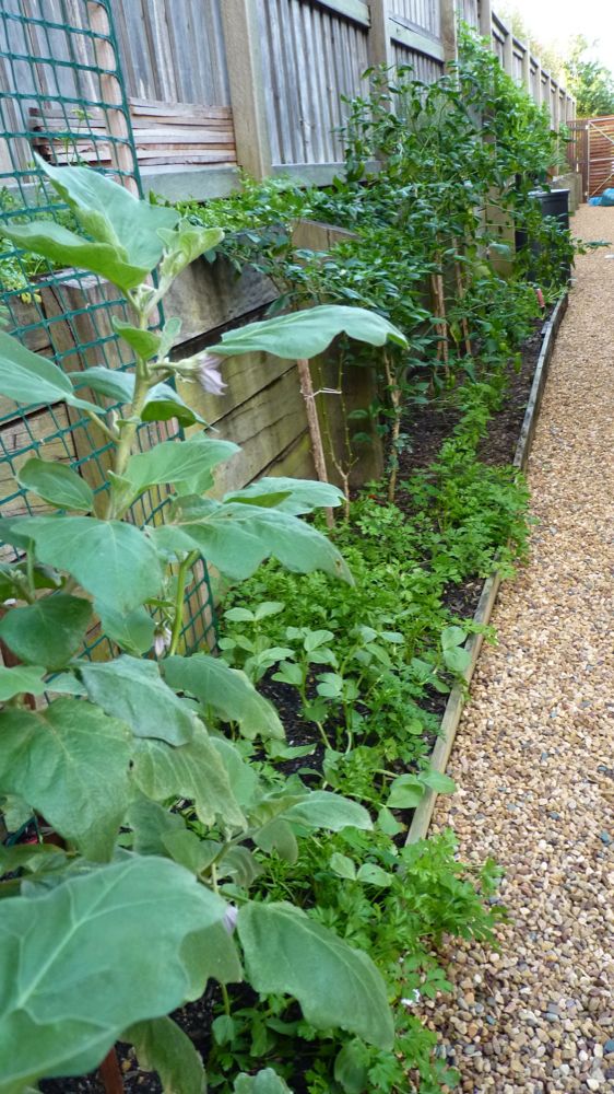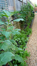 At my Uncle's place on Friday I couldn't help taking a few snaps of his very productive veggie garden in a narrow bed down the side of his house.