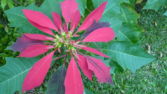 And a sure sign that it's getting colder - our poinsettias are blooming! We've got two huge bushes of them but this was the only head low enough for me to photograph.