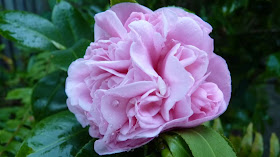 Our camellia bush has been covered in buds so I was so excited to to come across this first bloom today.