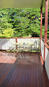 We've referred to the deck as the Chook Viewing Platform or CVP - here's the view looking down at the girls pecking around the bottom of the passionfruit vine along the side fence.