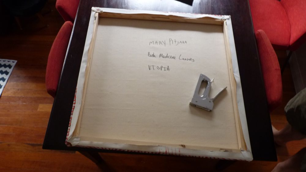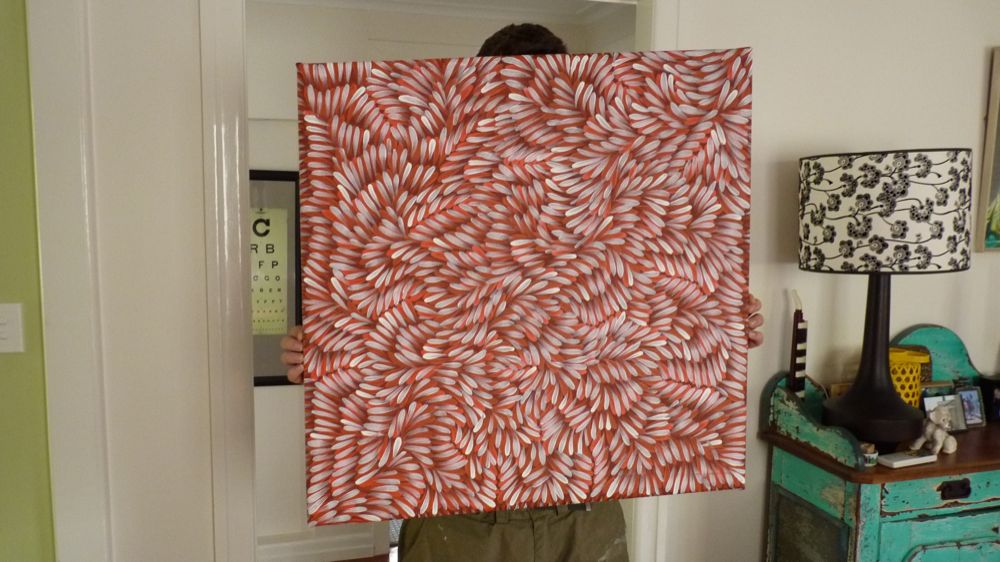 I had bought this gorgeous painting in Alice Springs in April but it's been languishing in it's tube since we returned.
