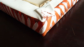 Here's the detail of one of corners - I put the folds on the top and bottom of the artwork so you wouldn't see them on the sides. You can also see that I sacrificed maybe 3cm of the artwork to the side of the canvas, but none to the back. A few of the professionals that I had spoke to were adamant that I'd have to sacrifice 10cm of the artwork since there wasn't a sufficient border.