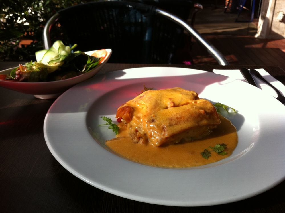 But the way I lured Mr Tchotchke into visiting was Gillian's Garden Cafe and the promise of sandcrab lasagne.