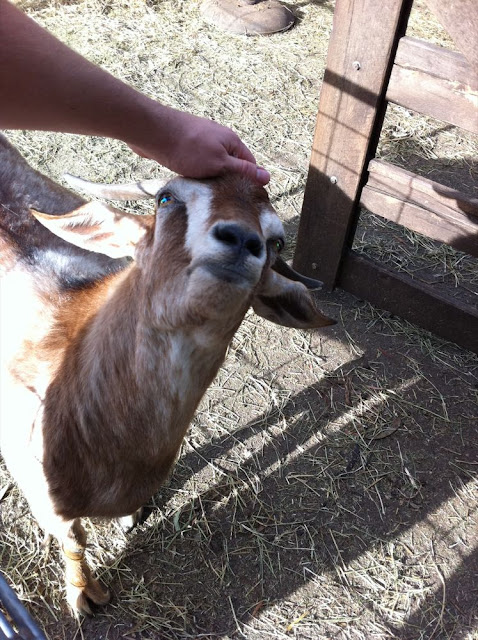 My chicken spotting skills are still developing but I think this is a Plymouth Rock.Mr Tchotchke always likes the billy goats - and tries to convince me that he'd never have to mow the lawn again..