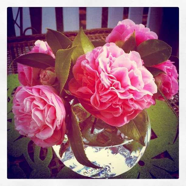 Your camelias are gorgeous. I love them as cut flowers except they droop quickly. We had a whole fence lined with at our old house, looking forward to popping some in at Betsy's. melx