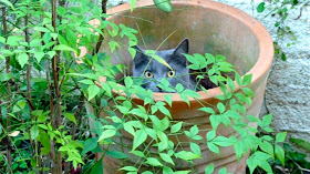 I saved the terracotta pot from heading to the dump at a relative's house yesterday - and my neighbours cat Mushie seems to have taken a shine to it too.