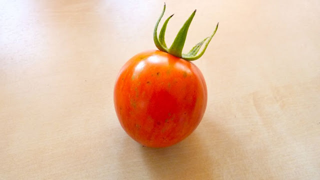I picked my first tomato this weekend - remember these little seedlings? They're now fully fledged bushes with a respectable amount of growing tomatoes.